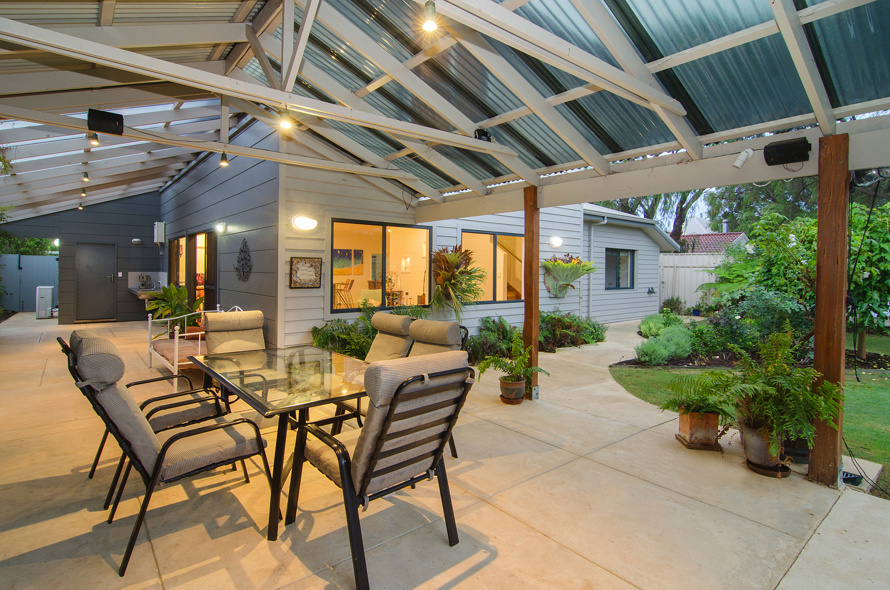 By covering the ground floor brick walls we converted the home into a reverse brick veneer home, creating thermal retention for winter and protection from the sun in summer.