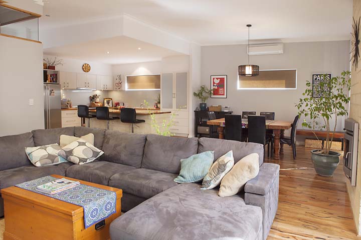 Using reverse brick veneer and with the rear of the home facing north, the correct positioning of windows and overhangs to allow sunlight in winter and shade in summer was paramount to the effective climate control of the home. Designed by local Busselton house designer Steve Creek of Harmonic Design, the end result focused on the thermal efficiency of the home as well as its visual appeal.